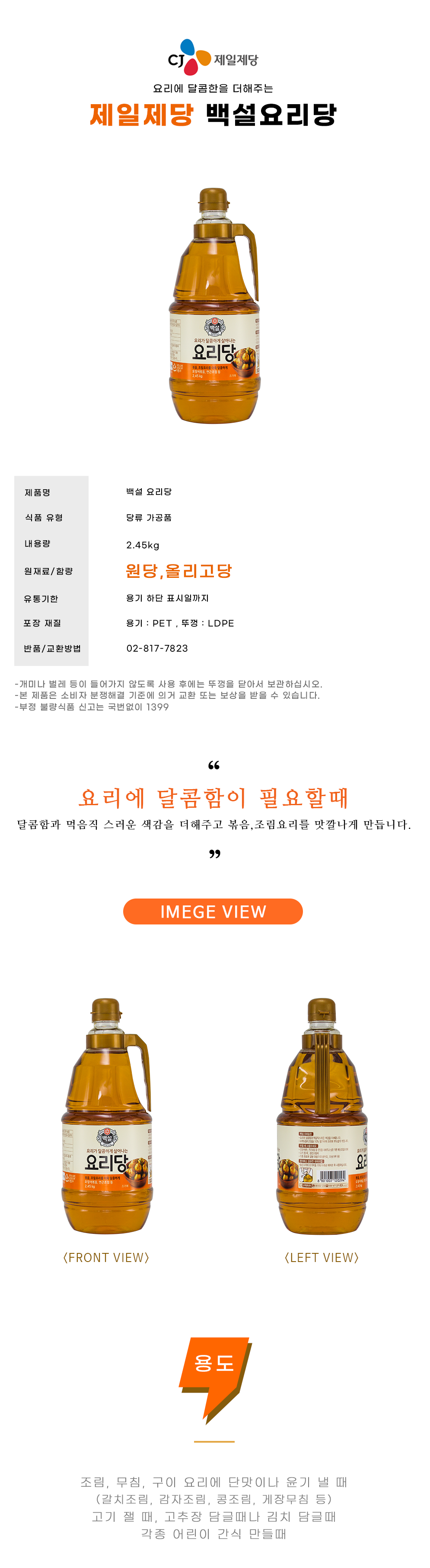 CJ제일제당 백설 요리당 2.45kg