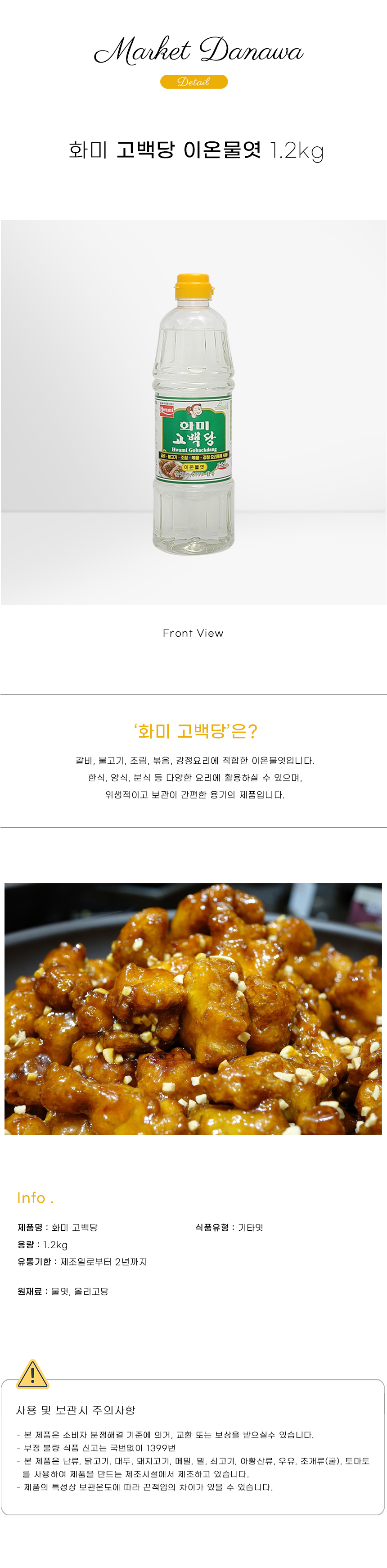 화미식품 이온물엿 고백당 1.2kg