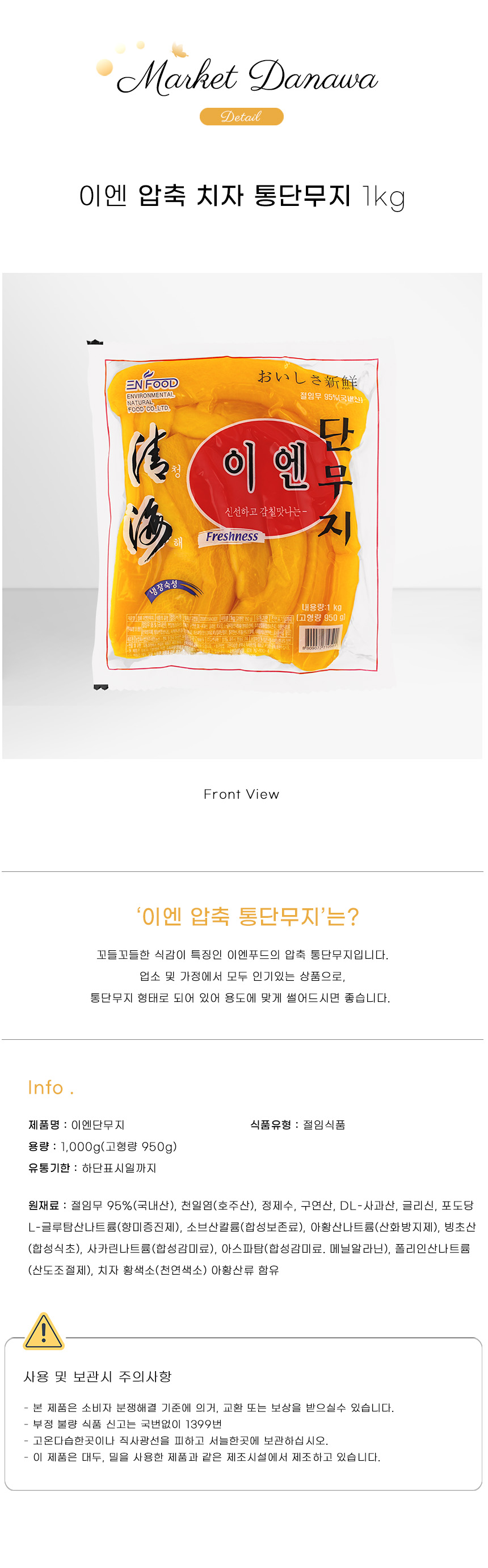 이엔푸드 압축 치자 꼬들 통단무지 1kg