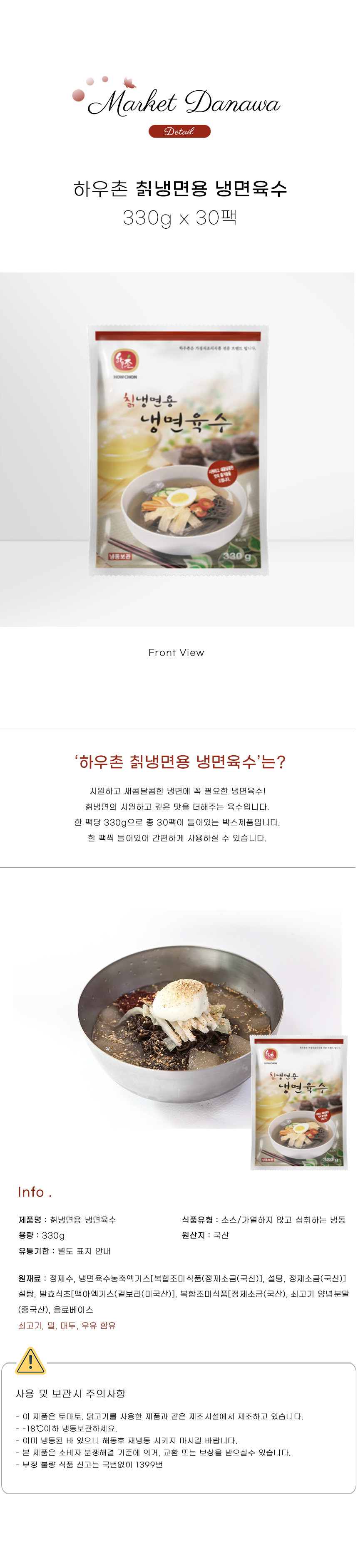 하우촌 칡냉면용 냉면육수 330g x 30팩 박스