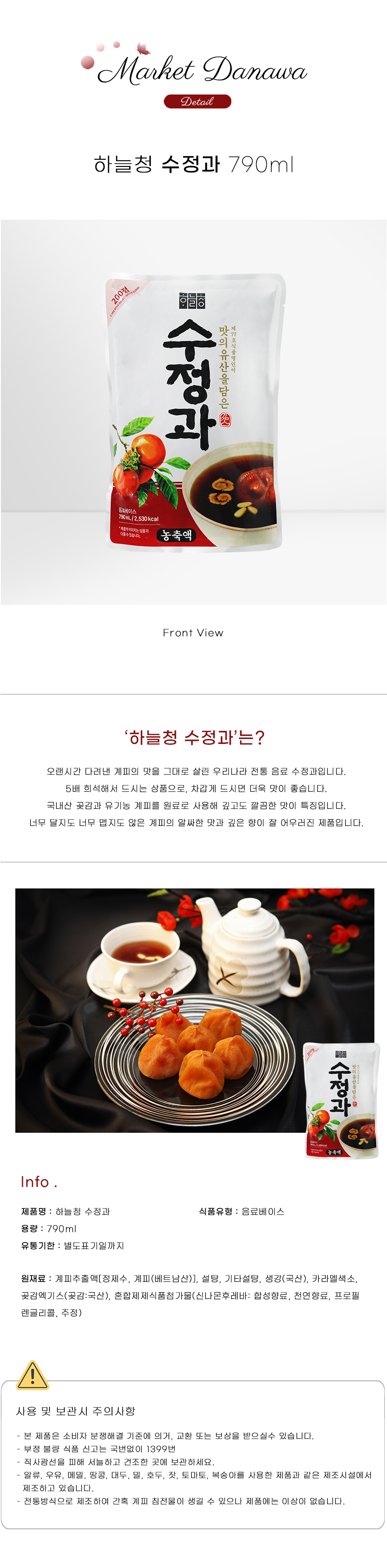 하늘청 수정과 농축액 5배희석 790ml