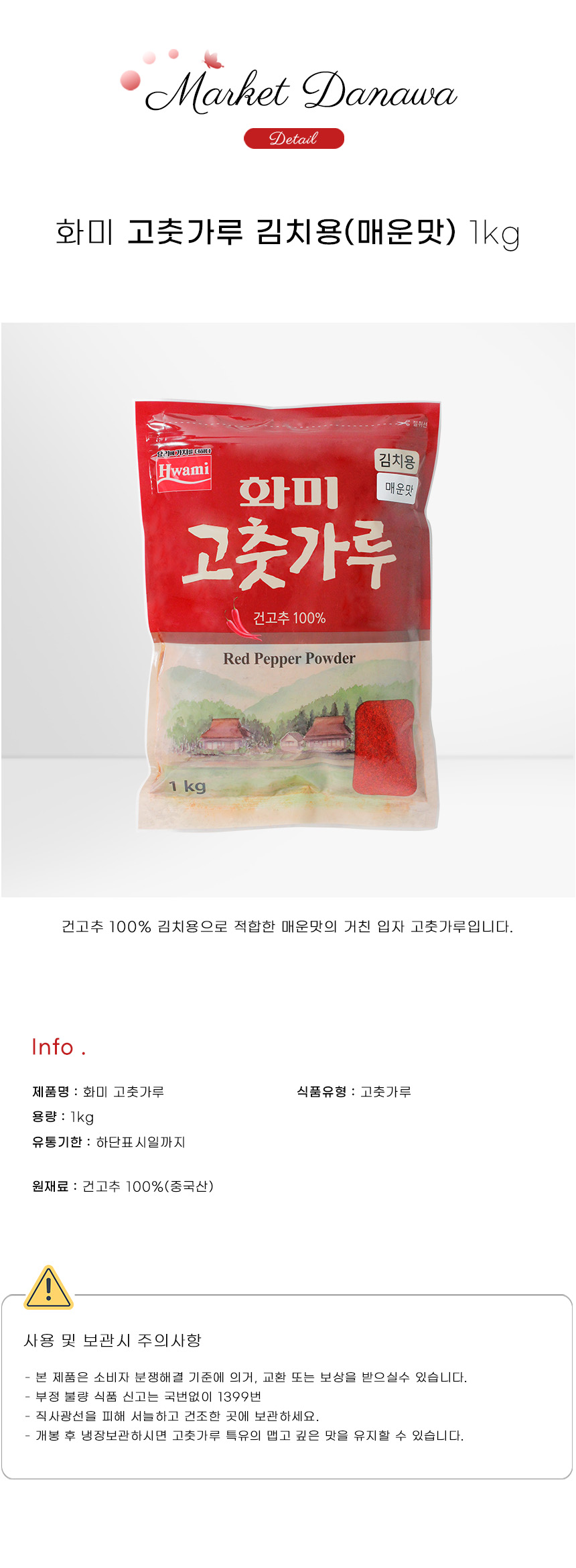 화미 매운고추가루 거친 김치용 1kg