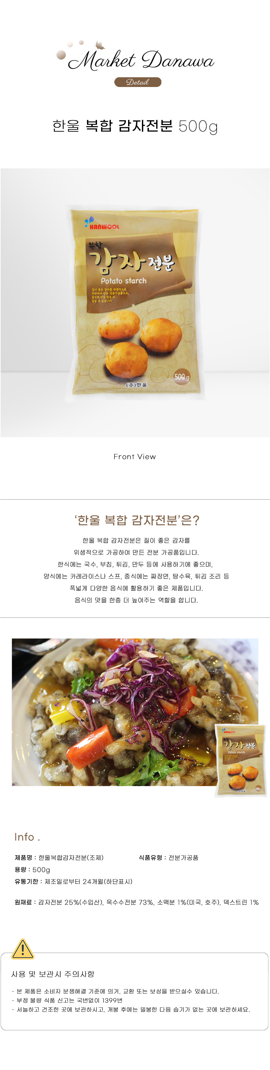 한울식품 복합 감자전분 감자 25% 500g