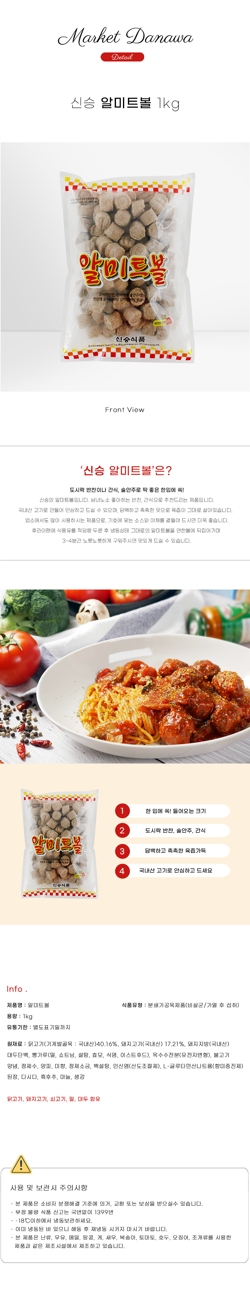신승 알미트볼 1kg 업소용 냉동