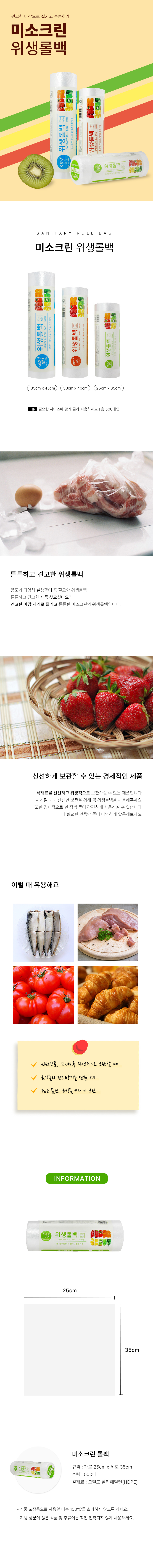 미소크린 위생 롤백 롤팩 25cm x 35cm 중 사이즈 일회용 비닐 500매